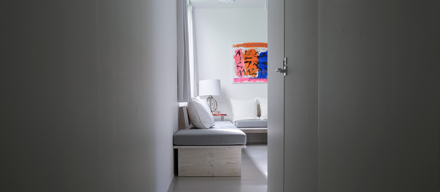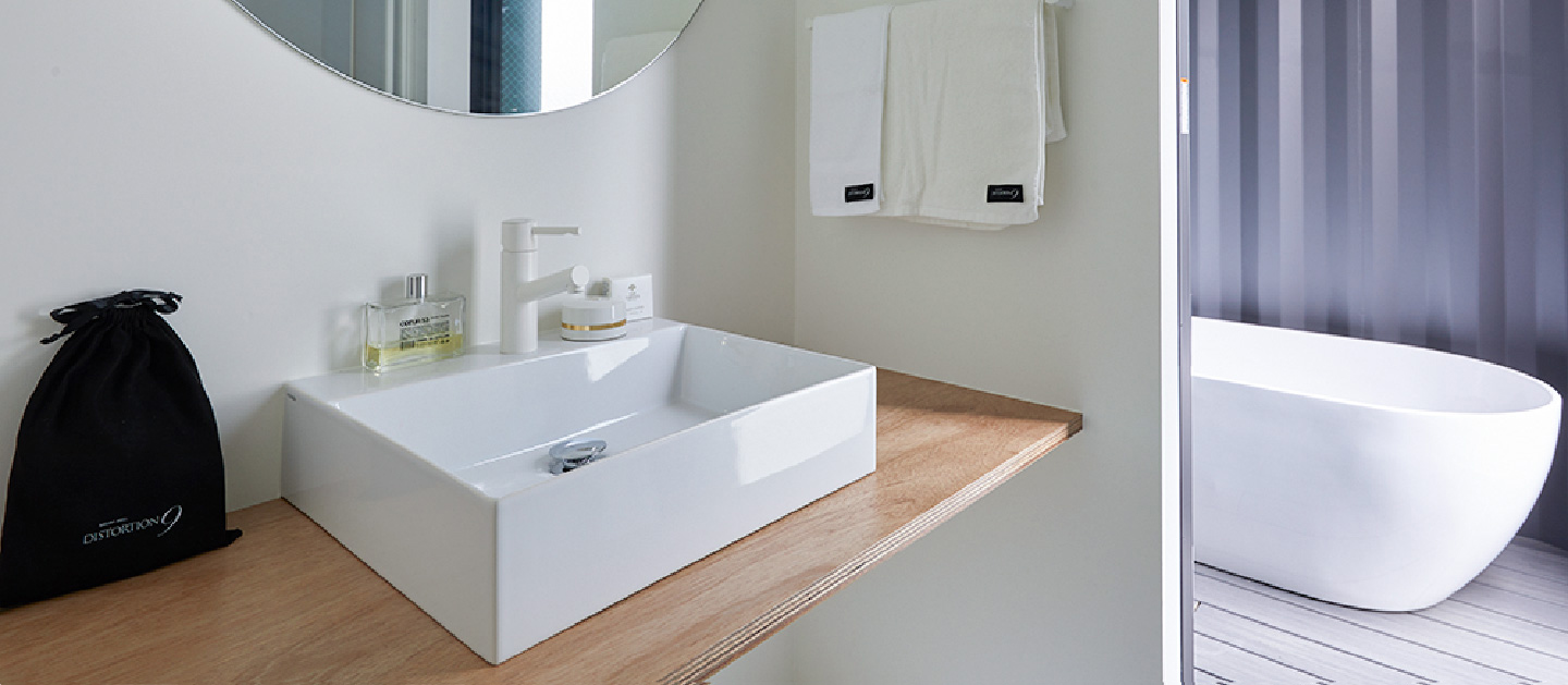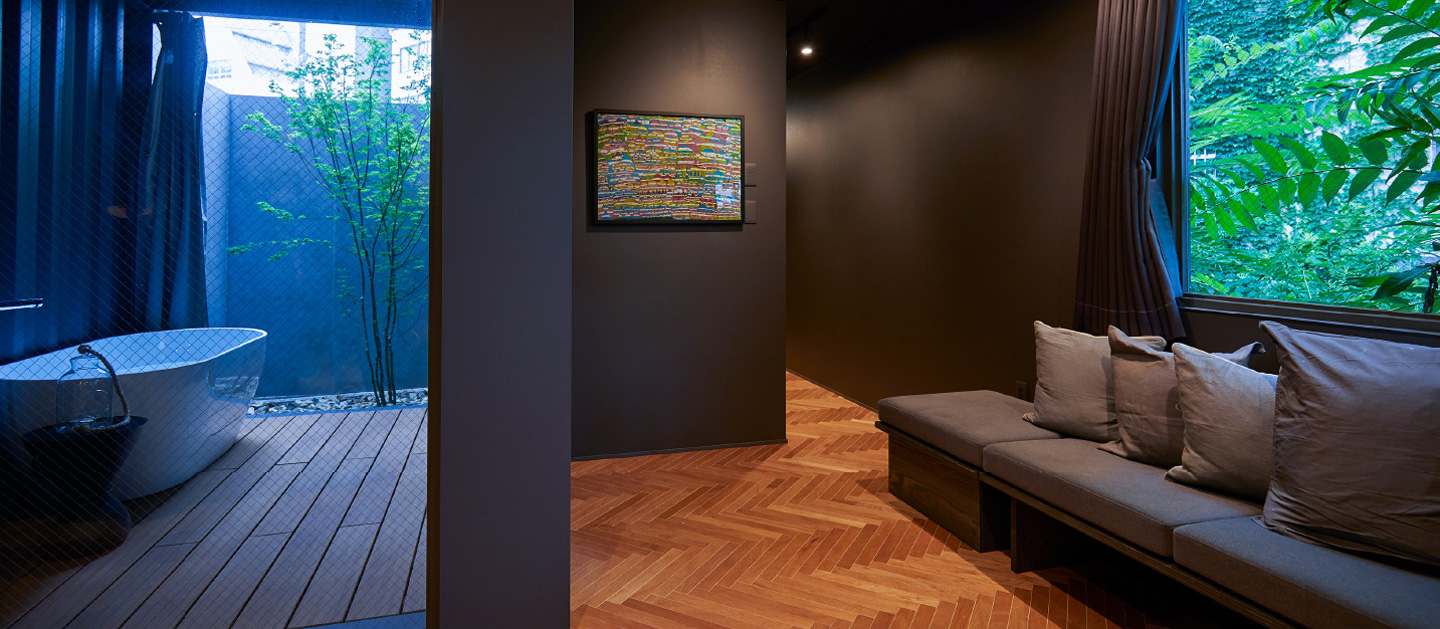 GALLERY HOTEL「DISTORTION9」には2つのお部屋をご用意しています。グレーを基調とした1Fの「GALLERY 1」と、真っ白な壁が印象的な2Fの「GALLERY 2」。いずれもテラスバス付きで、都会の喧騒を忘れる癒しの時間をご堪能いただけます。