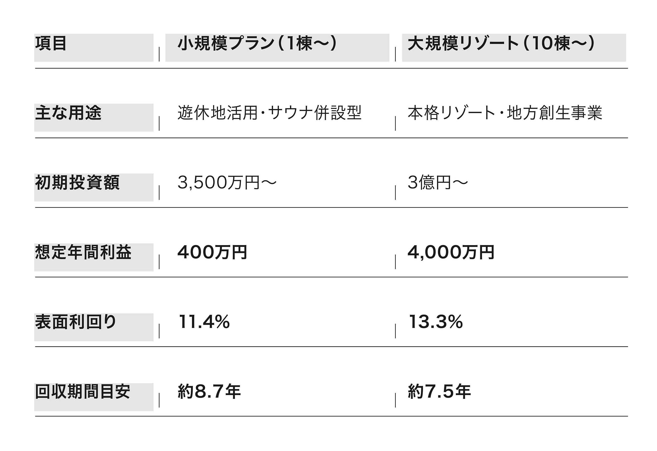 【 モデル収支例(10棟規模のリゾート施設の場合)】