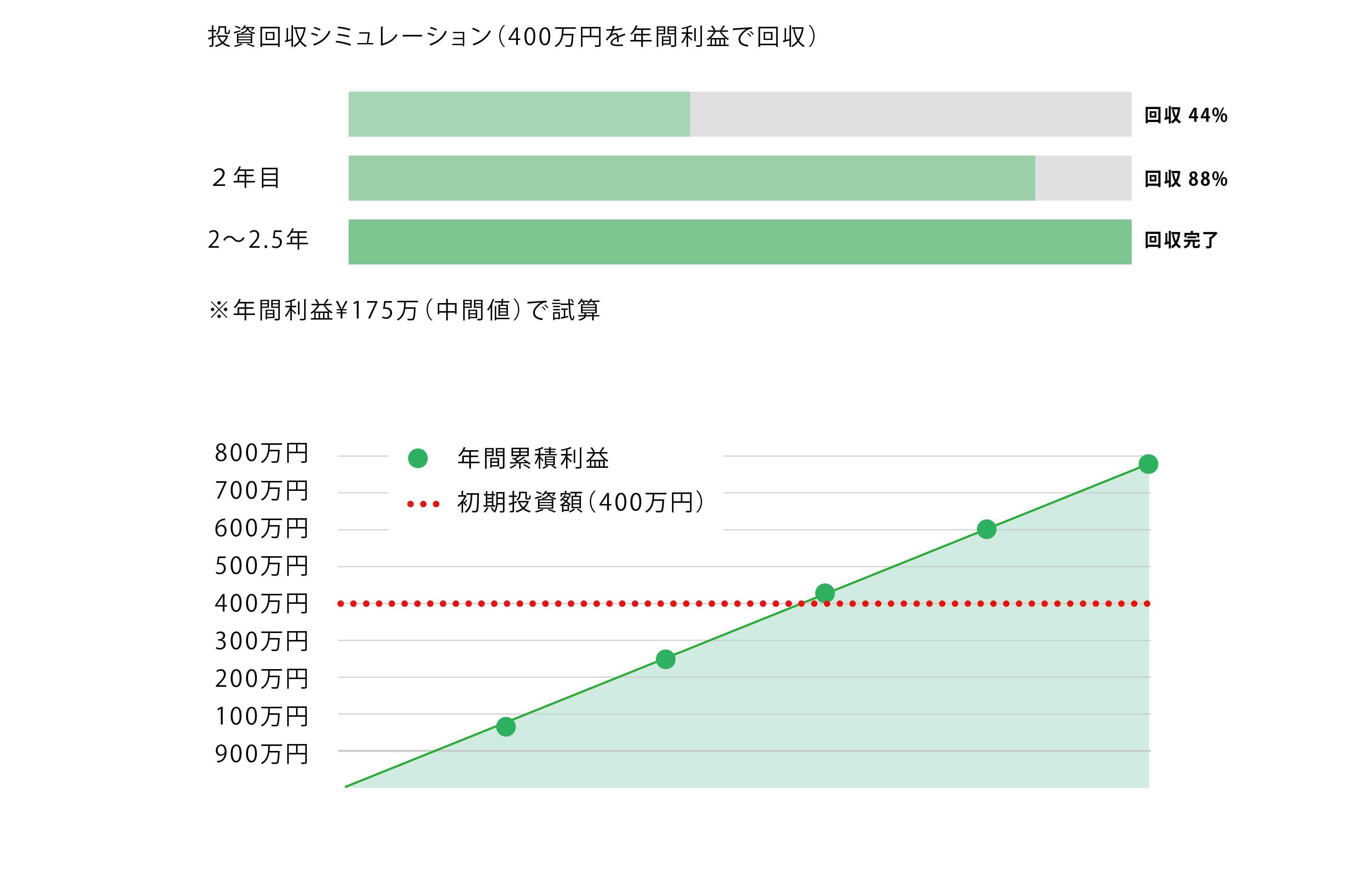 - 初期投資回収期間: 約2.0年 〜 2.5年