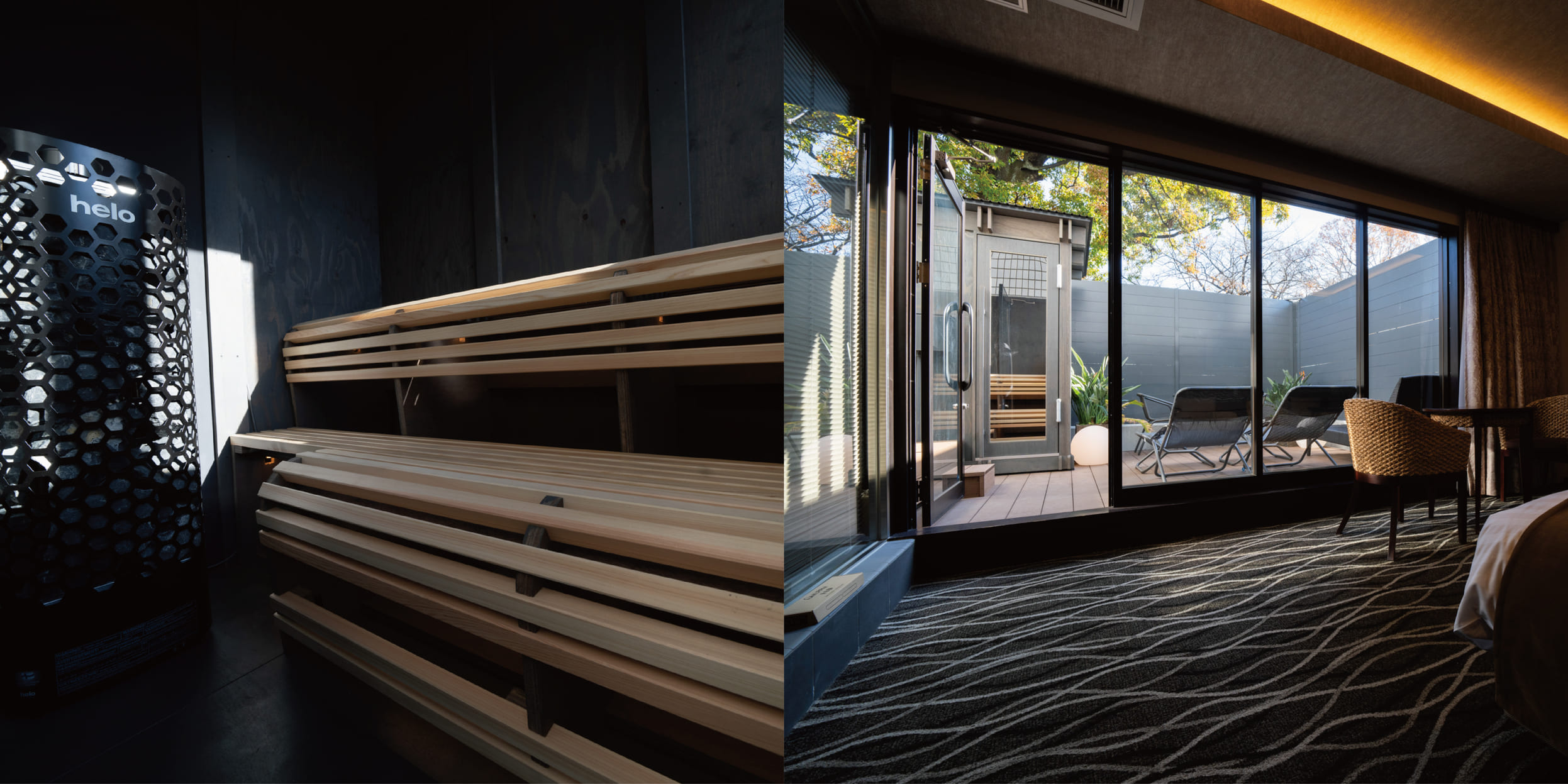 - 内容: スイートルームのベランダ(約2坪)に専用サウナ小屋を設置。