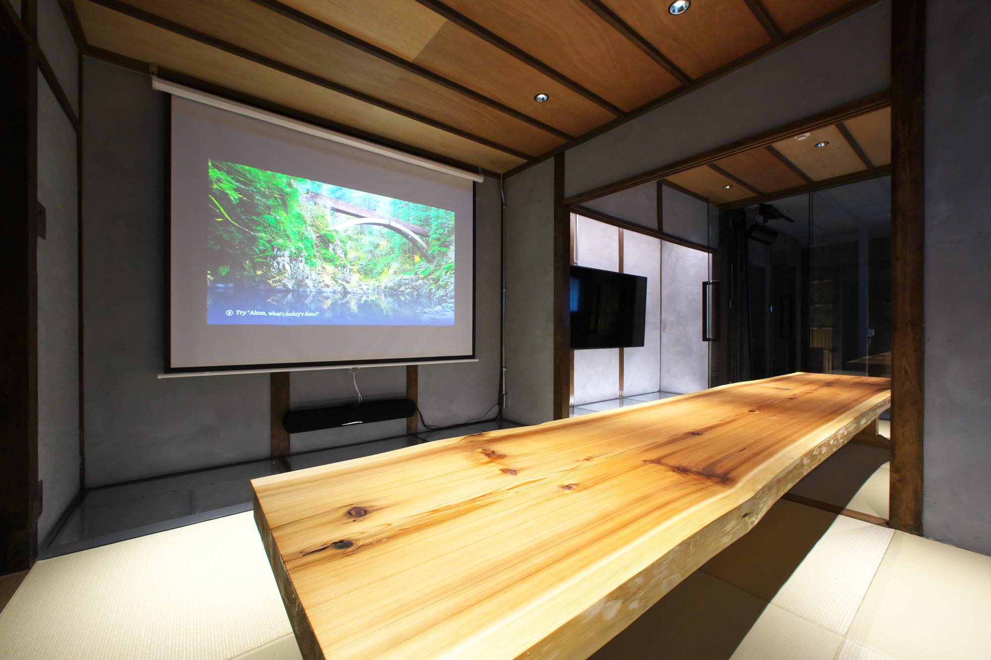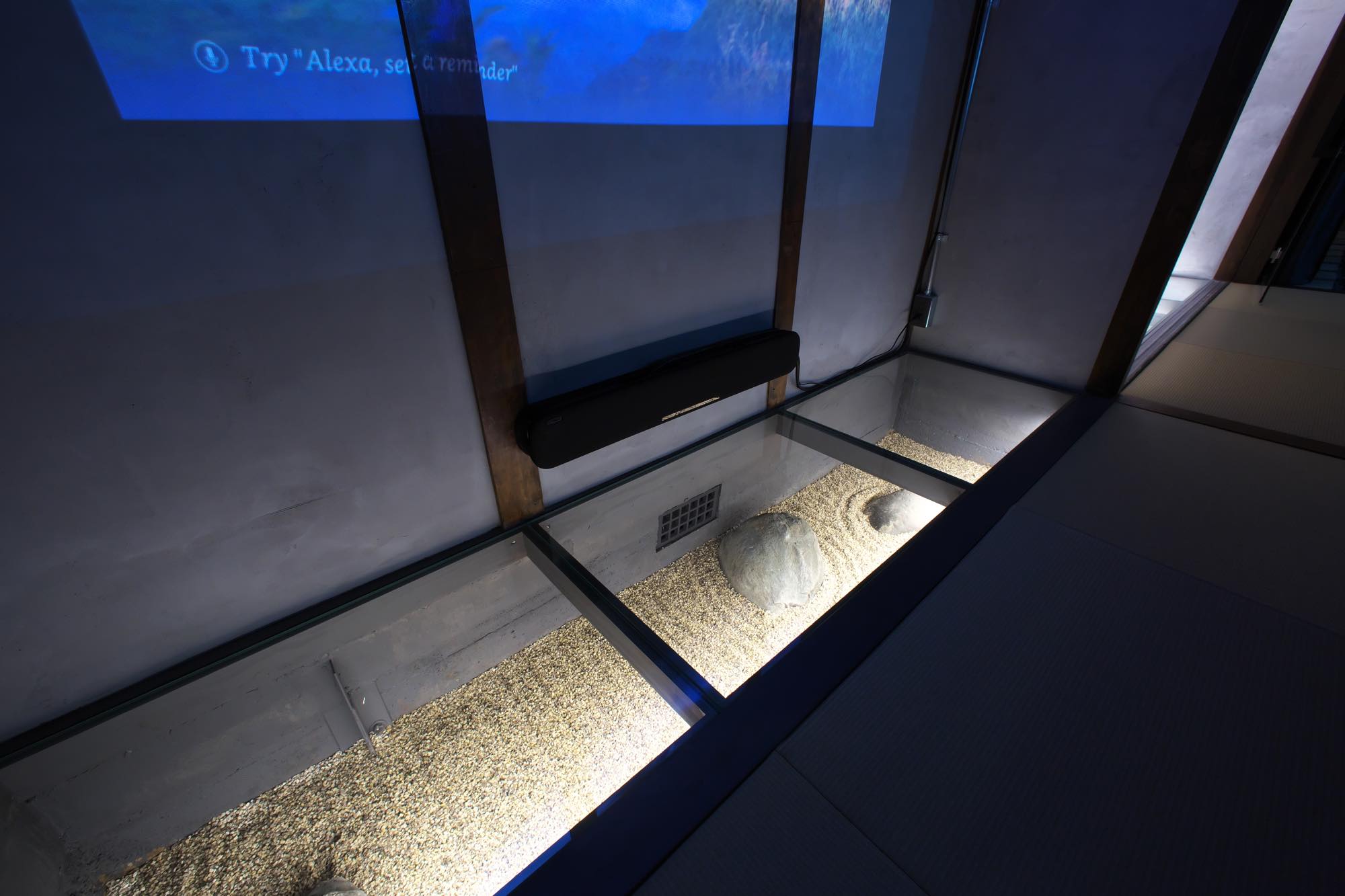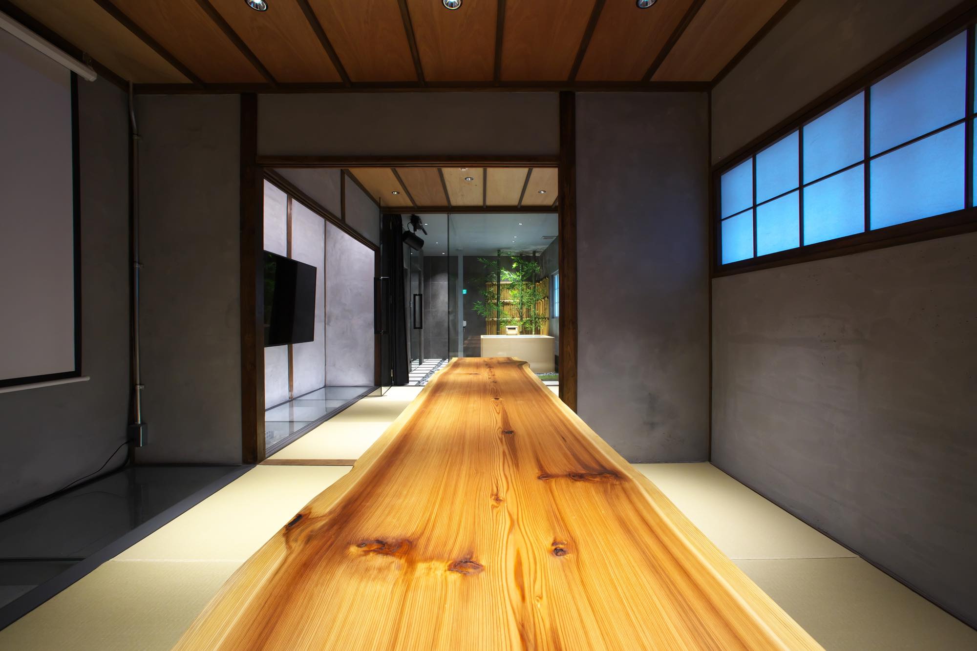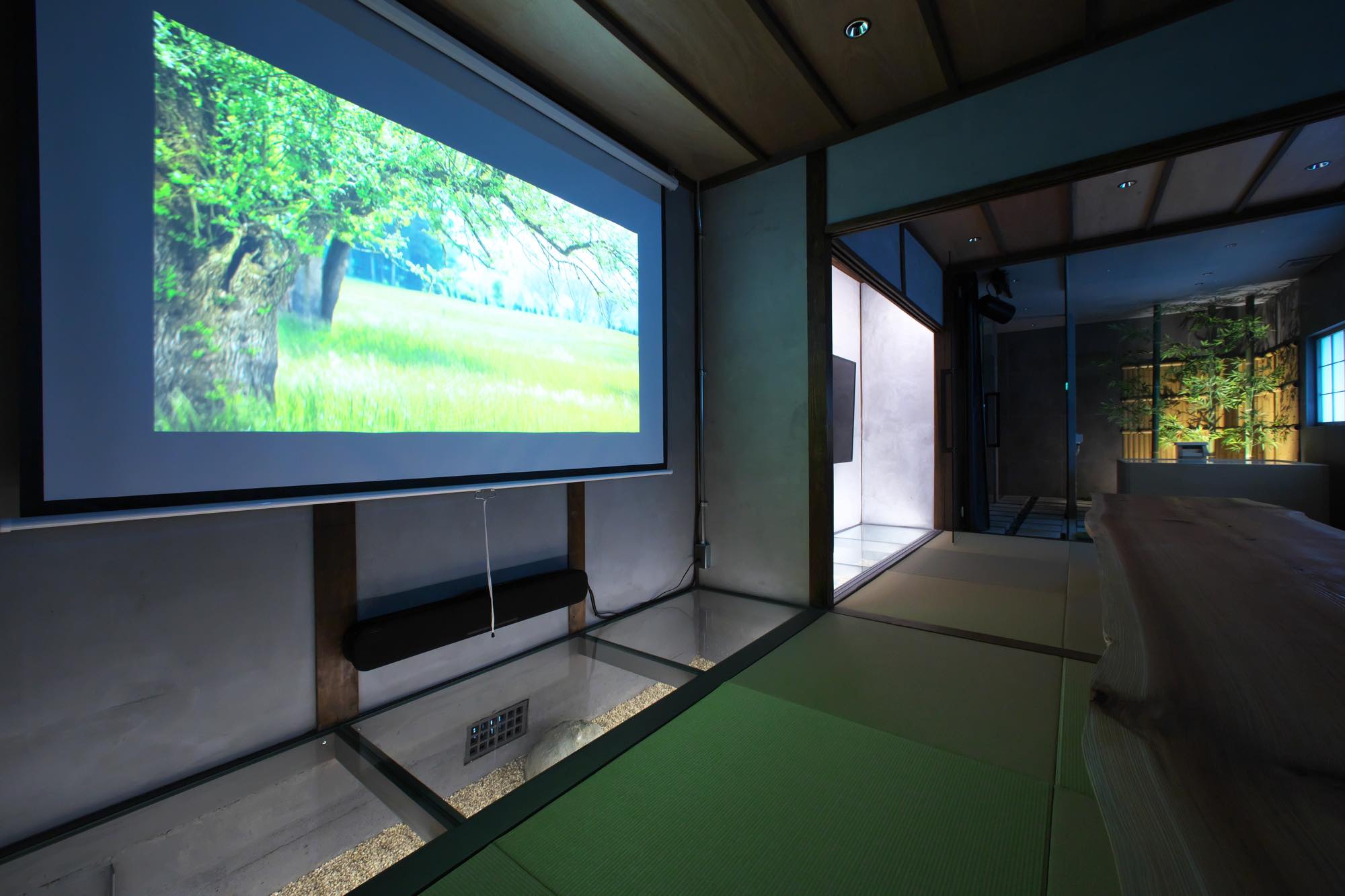 施設内には、1枚石(レコストーン)の玄関扉、ガラス張り枯山水、枯山水を現代的に解釈デザインした檜風呂、木工用CNCルーターを利用した伝統格子を使用し、日本の特徴的なデザイン要素でお客様をもてなします。